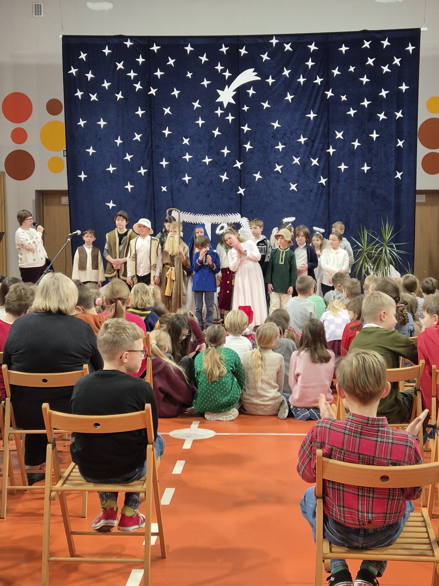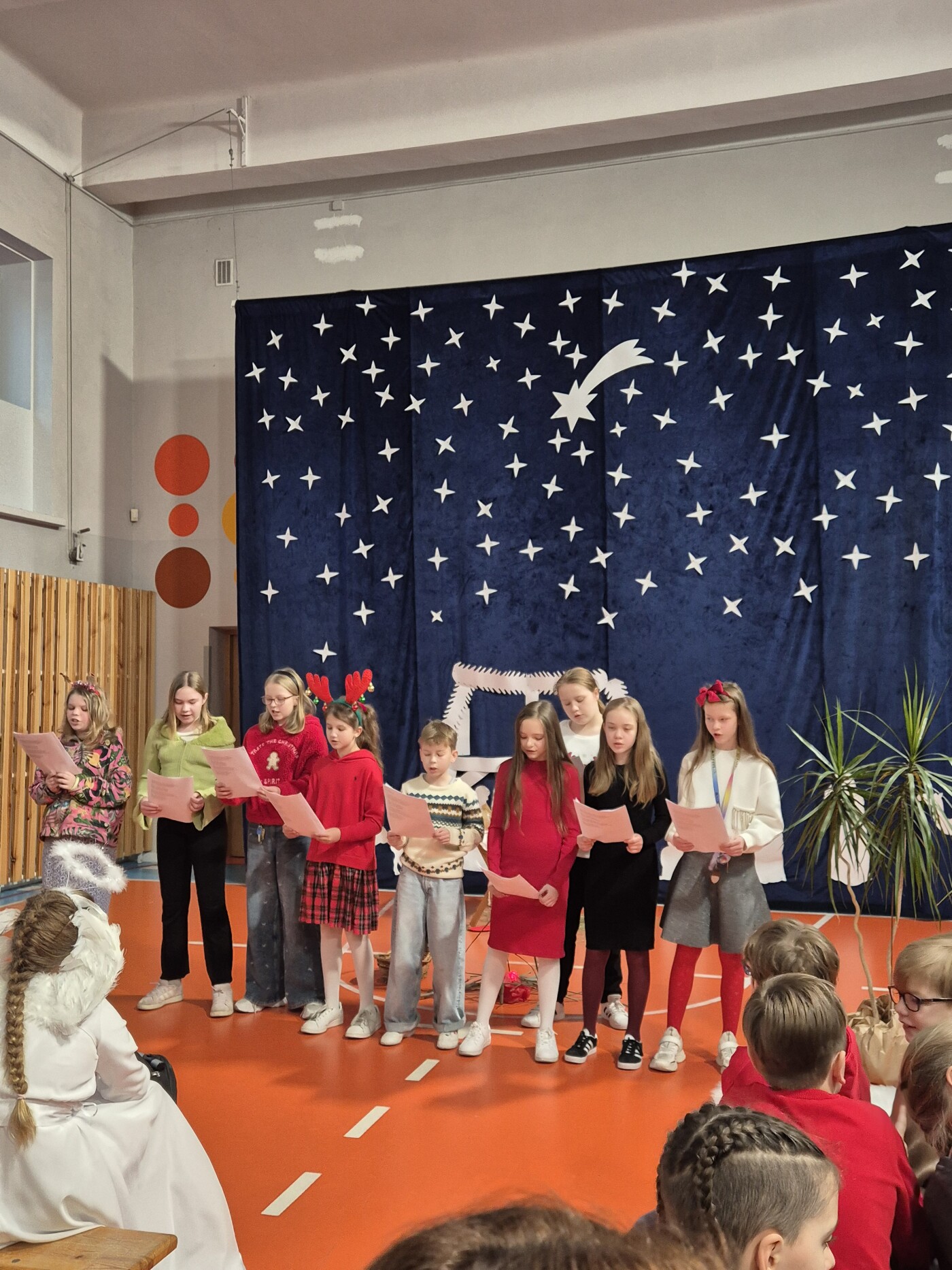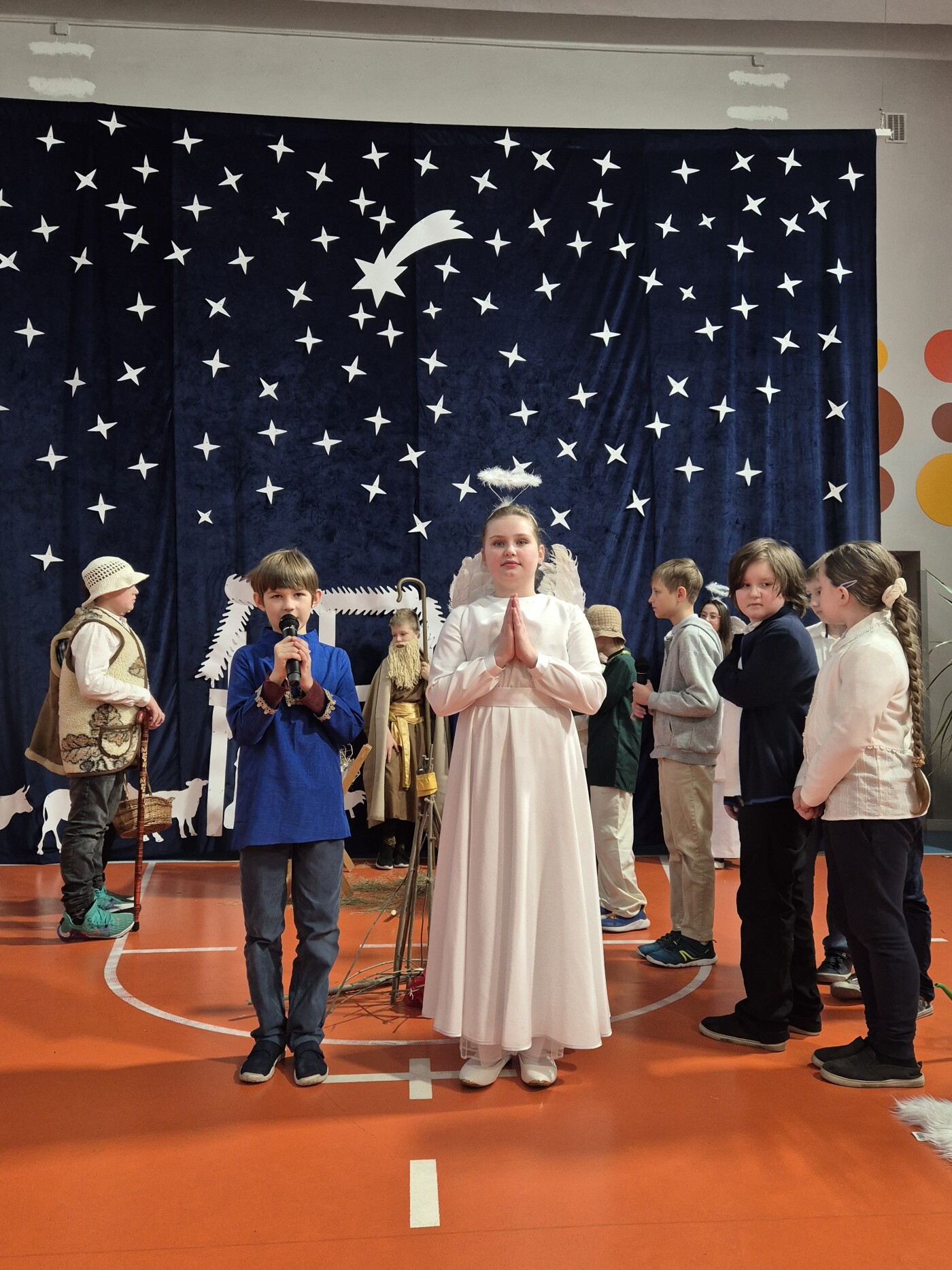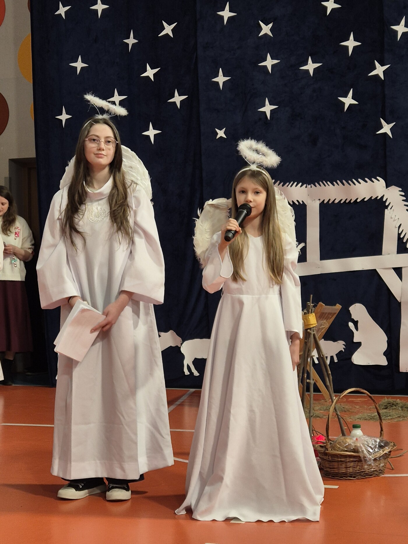 W 18 - 19 grudnia 2025 w naszej szkole odbyły się doroczne Jasełka pt. „Cuda, cuda ogłaszają”. Była to opowieść o niewidomym pasterzu, który przybywa do Jezusa do Betlejem i zostaje uzdrowiony przez Pana Jezusa. Występ przygotowali uczniowie klasy IV b i IV c. Cała społeczność szkolna w pełnym skupieniu oglądała całe widowisko.