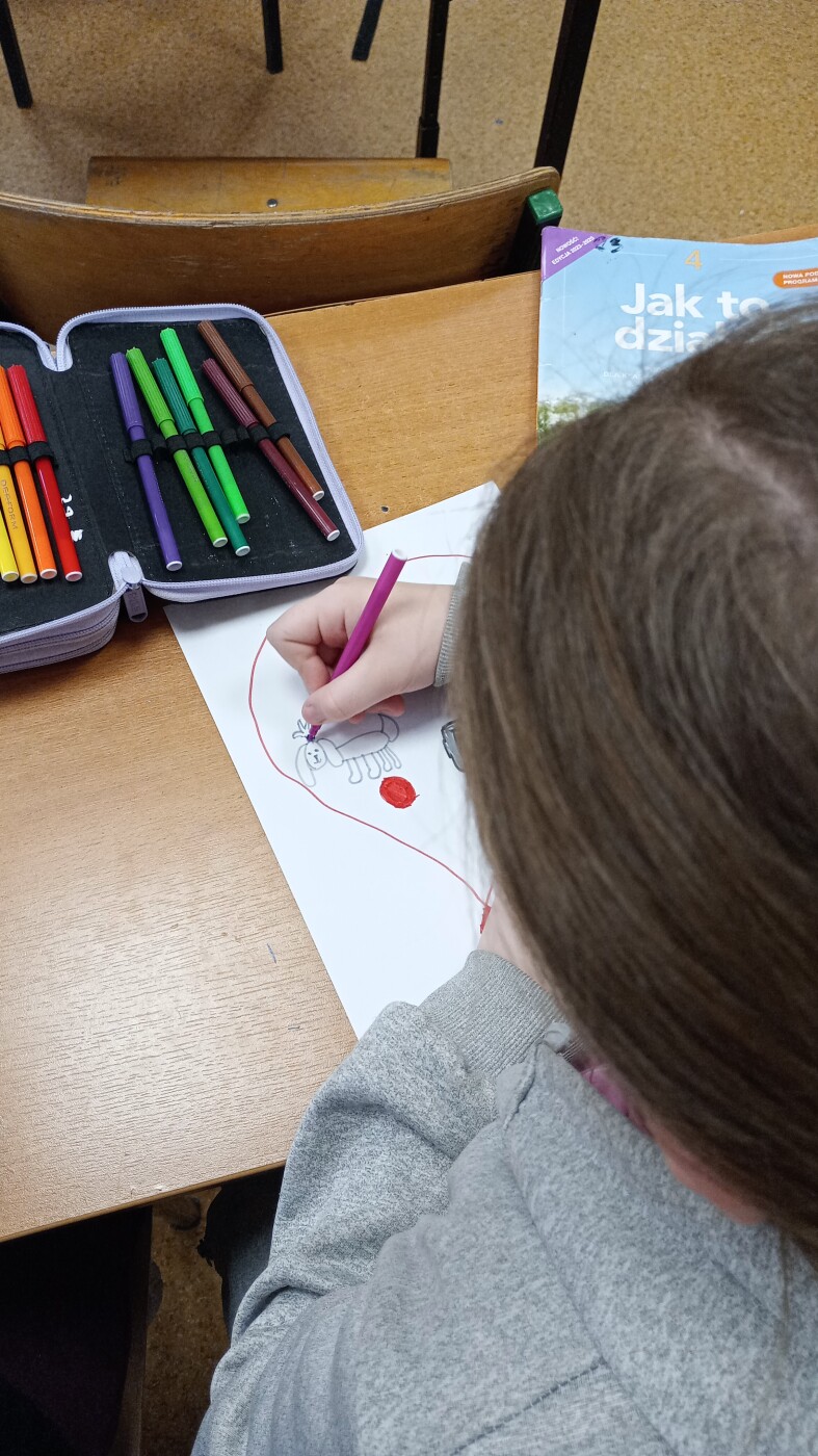 W poniedziałek i wtorek, w wybranych klasach czwartych, piątych i szóstych, na lekcjach techniki z panią Dorotą, odbyły się zajęcia „Kolory moich emocji – jak się wyciszyć i zadbać o siebie”. Uczniowie poznawali jaki związek mają kolory z emocjami, rozmawiali o tym i rysowali to, co sprawia, że czują się dobrze. W klasie 5a warsztaty o emocjach przeprowadzała pani Iza.